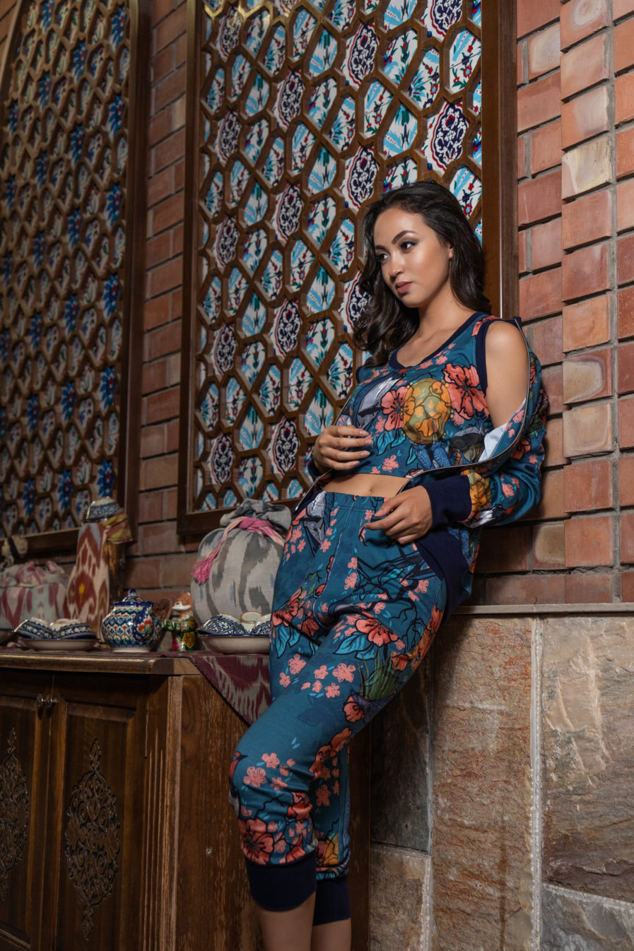 Комплект из трёх предметов: бомбер, кроп-топ, штаны-капри