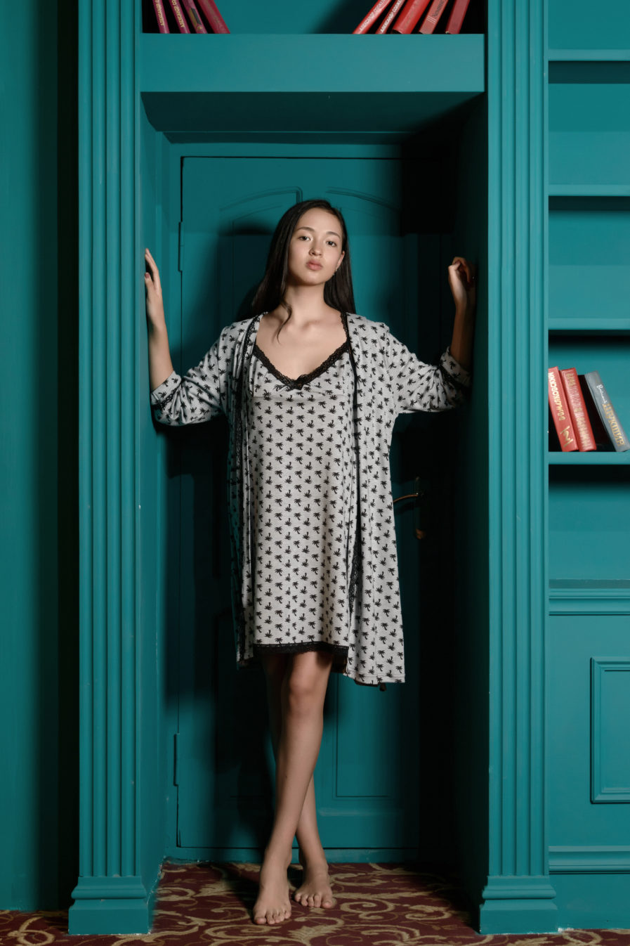 Комплект из двух предметов: халат с длинным рукавом, сорочка на бретелях