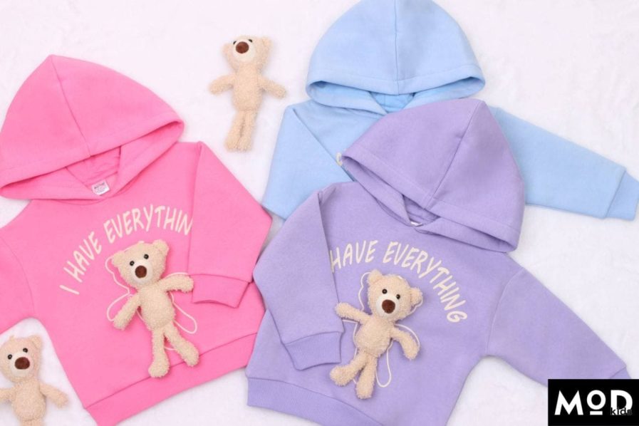 Толстовка для детей. Сезон: Осень-зима. Размеры: 92-110. Возраст: 2-5. Цвет: тёмно-бежевый, голубой, горчичный, розовый, лиловый, серый. Материал: Футтер3Х Нитка. Состав: 95% Х/Б 5% Эластан. Кол-во размеров в одной упаковке: 4. Кол-во одного размера: 30. Итого кол-во шт в упаковке: 120.